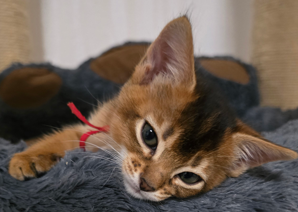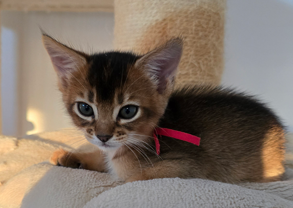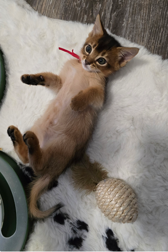 Am 24.11.2025 ist der G-Wurf zur Welt gekommen. Um 16:52 Uhr erblickte ein kleines Katzenmädchen in ruddy (wildfarben) das Licht der Welt. Die Eltern des kleinen sind unsere Somalidame Ferox Felinus Victoria und unser Abessinierkater Borka vom kuschligen Leoparden. Das kleine Mädchen wird den Namen Gisele von Solongo tragen.