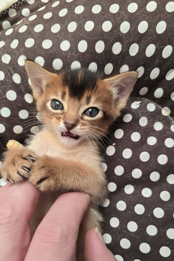 Um 16:52 Uhr erblickte ein kleiner Kater in ruddy (wildfarben) das Licht der Welt.Die Eltern des kleinen sind unsere Somalidame Ferox Felinus Victoria und unserAbessinierkater Borka vom kuschligen Leoparden. Der kleine Kater wird den Namen Grisu von Solongo tragen.